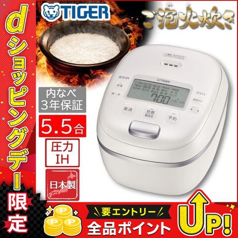 タイガー魔法瓶 圧力IHジャー炊飯器 炊きたて ご泡火炊き 5.5合炊き 遠赤9層土鍋かまどコート釜 マットホワイト 日本製 JRI-A100-WM