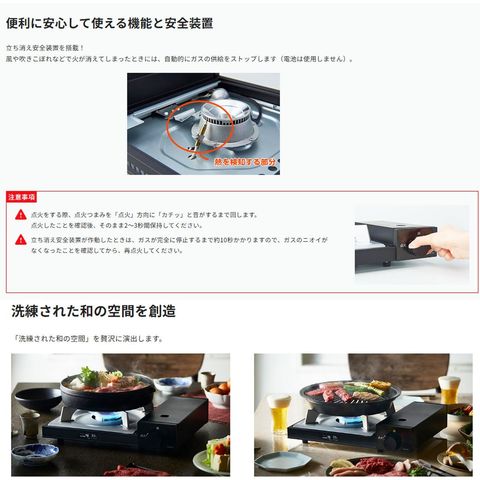 本製品は、見た目の美しさだけでなく、機能性も兼ね備えています。高火力で素早く調理を開始でき、食材の旨味を閉じ込めます。また、鍋やパーティー、アウトドア、キャンプなど、様々なシーンで活躍する汎用性の高さも魅力です。さらに、圧力感知安全装置をはじめとする複数の安全装置が内蔵されており、安心してご使用いただけます。防災用品としても備えておけば、いざという時にも役立つでしょう。
