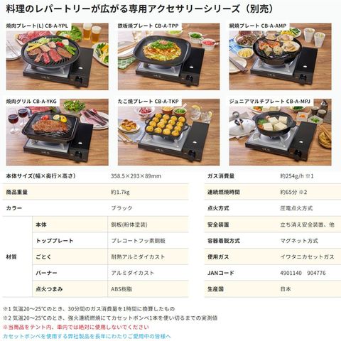 連続燃焼時間:イワタニカセットガス使用時:約70分