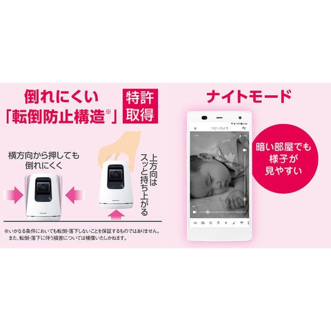 ・カメラの底面に特殊な吸盤を装着しているから、赤ちゃんが当たっても倒れにくい