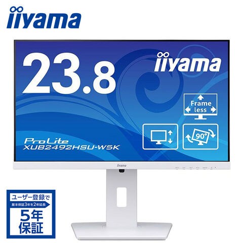 iiyama 液晶ディスプレイ 23.8型/1920×1080/D-sub HDMI DisplayPort/ホワイト/スピーカー:あり/IPS方式/昇降/回転 XUB2492HSU-W5K