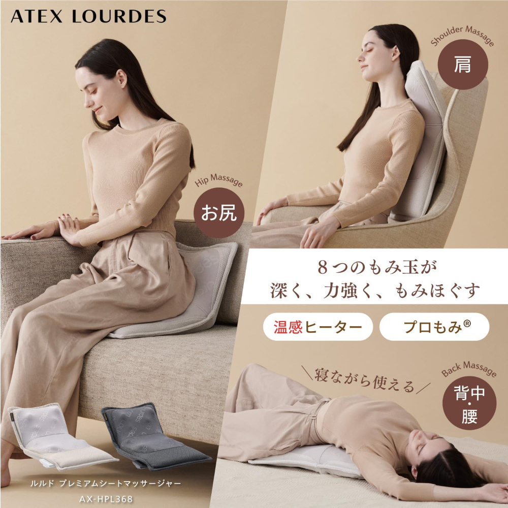 アテックス ルルド プレミアム シート マッサージャー ダークグレー ATEX じんわりあたたか マッサージチェア お尻 背中 肩 腰 ギフト 母の日 AX-HPL368-dg