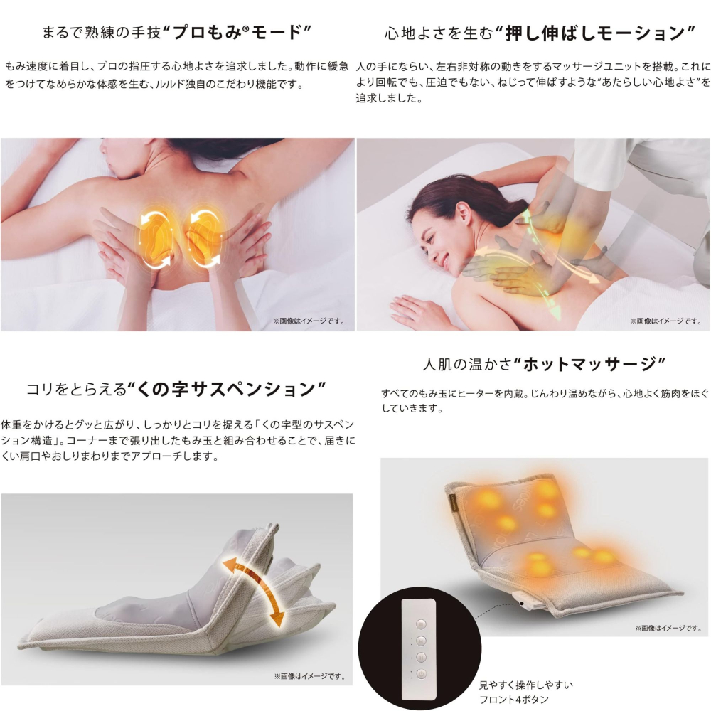 コーナーまで張り出したもみ玉と組み合わせることで、届きにくい肩口やおしりまわりまでアプローチします。