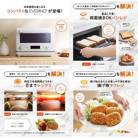 象印マホービン オーブンレンジ 18L EVERINO(エブリノ) レジグリ サクレジ パンレジ 角皿&焼きプレート付き ペールホワイト ES-KA18-WM