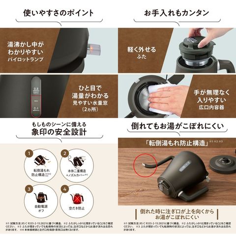 象印独自の「転倒湯もれ防止構造」※1※2※3
