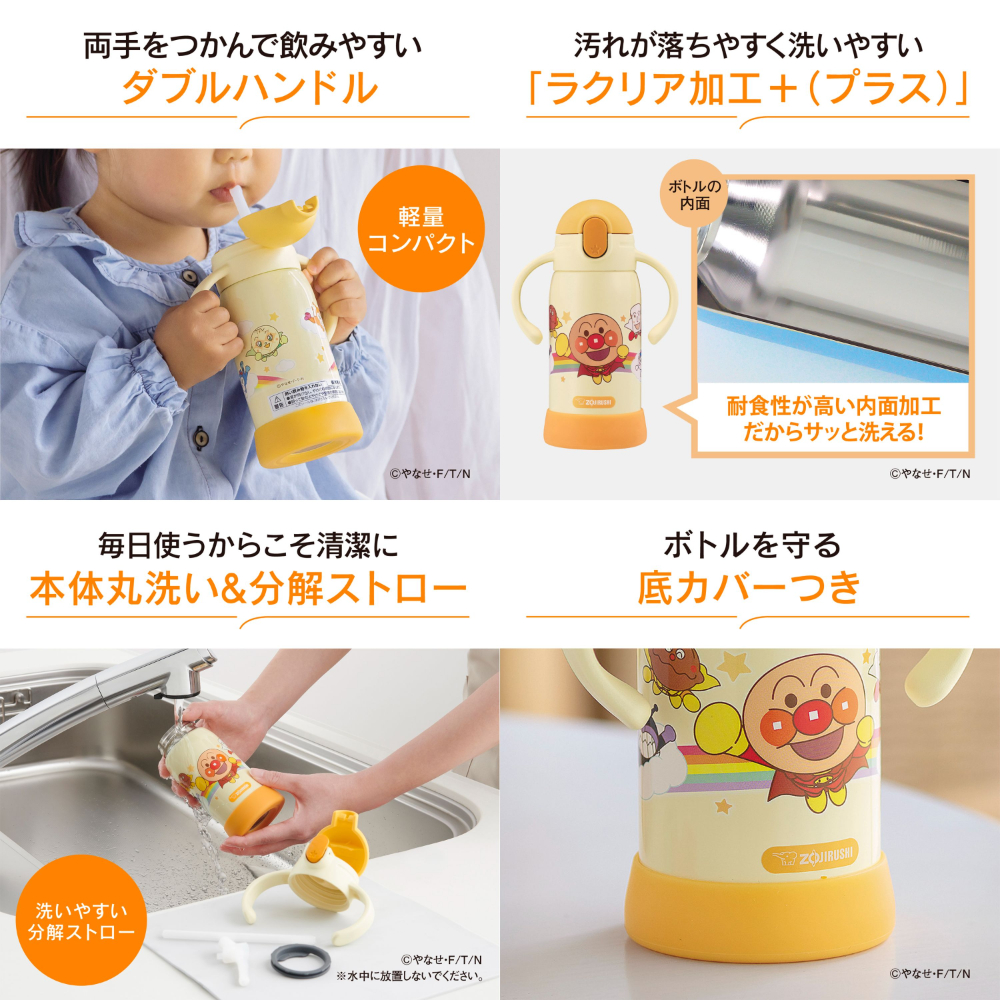 象印マホービン 【在庫処分!早い者勝ち】 アンパンマン ステンレスクールボトル 子供向け 320ml ベビーマグ ストローボトル ダブルハンドル 持ち手 水筒 赤ちゃん 乳児 SQ-DB30A-EY