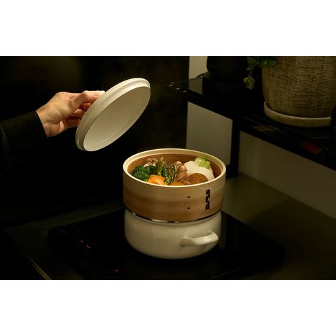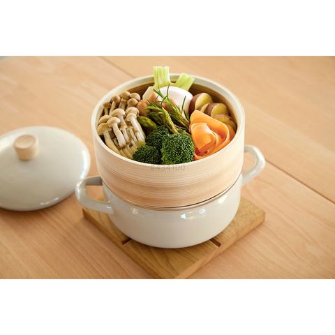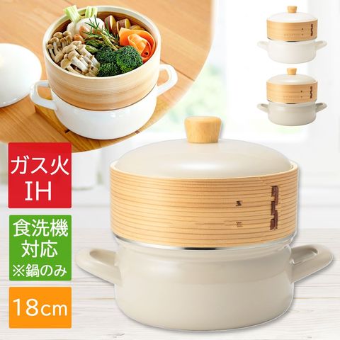富士ホーロー 【在庫処分!早い者勝ち】 せいろ付きホーロー鍋 ガス火/IH火両対応 18cm グレージュ 蒸し器 ふた・シリコンシート付き 天然木・竹製 両手鍋 琺瑯 SER-18W.GG