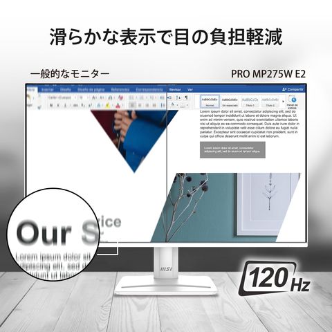 MSI ビジネスモニター 27インチ/120Hz/フルHD(1920×1080)/IPS/HDMI//HDR PRO-MP275W-E2のレビュー
