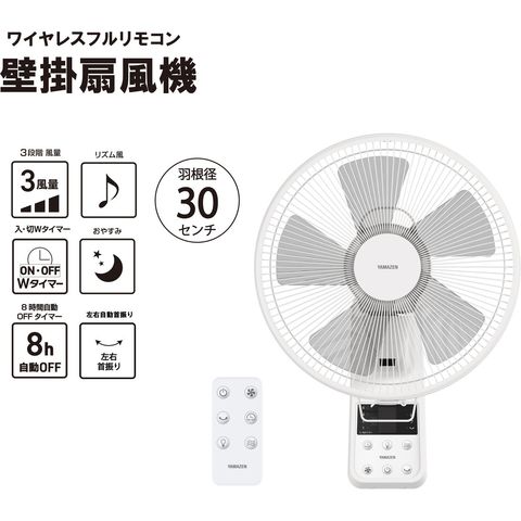 山善 30cm 壁掛け扇風機 リモコン式 風量3段階 入・切タイマー YWX-E301