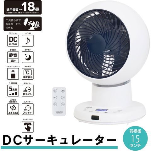 山善 15cm DCサーキュレーター 上下・左右首振り リモコン お手入れ簡単 全分解 扇風機 YAR-DDW154