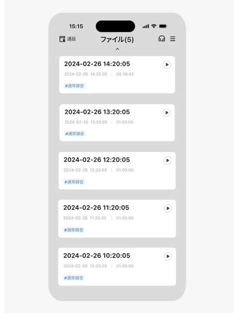 最大5時間が一つの録音データに