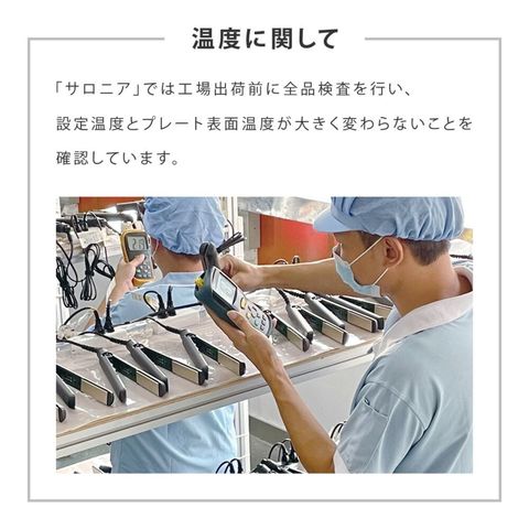 工場出荷前に全品検査を行い、設定温度とプレート表面温度が大きく変わらないことを確認しています。