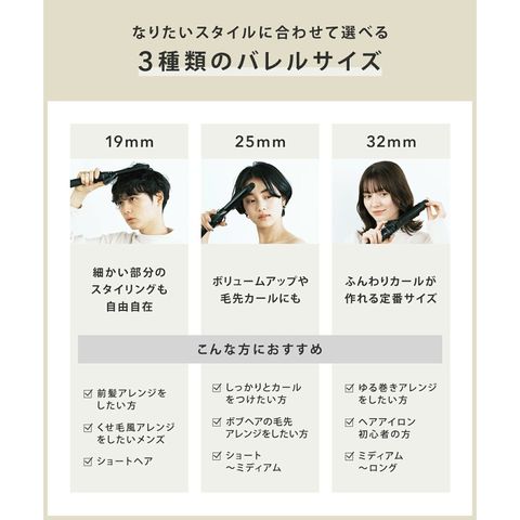 32mm:電源を入れてから約50秒※で使用可能な温度に到達。スピーディーにスタイリングが可能です。