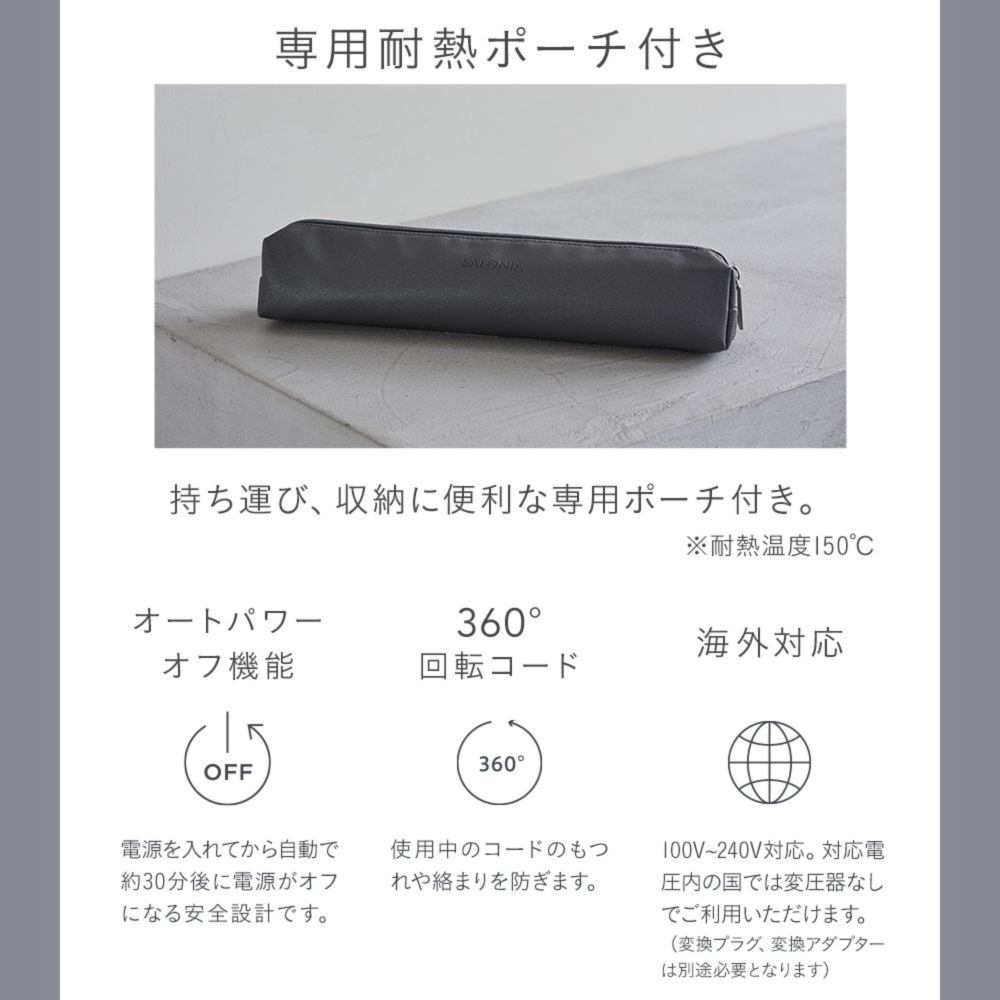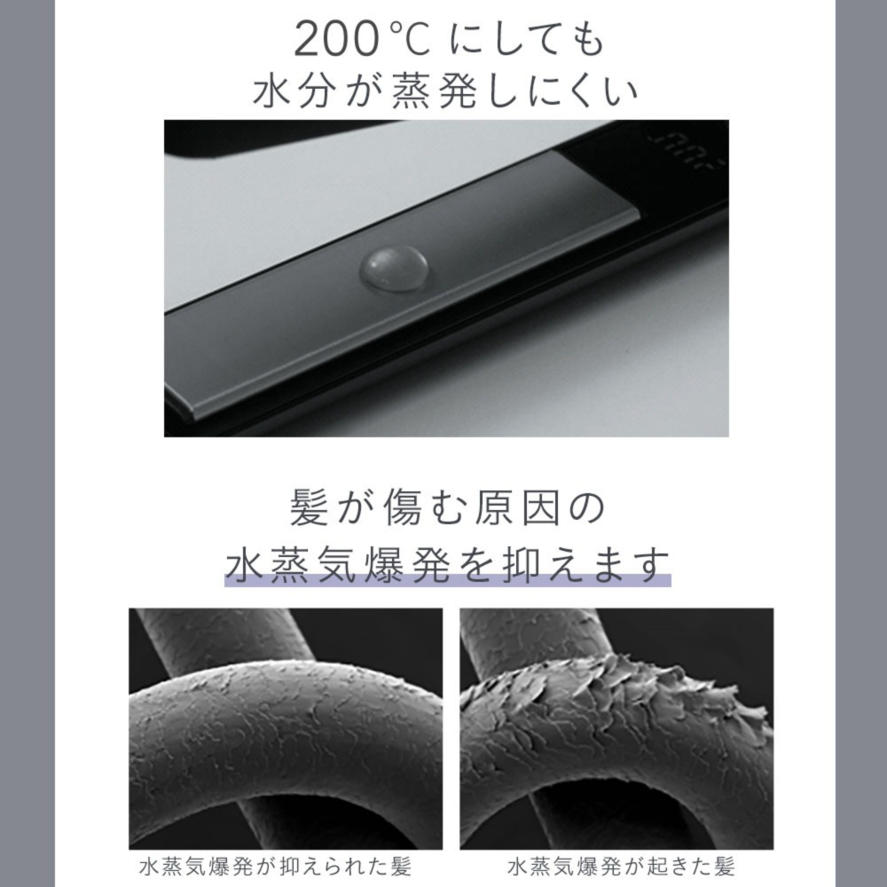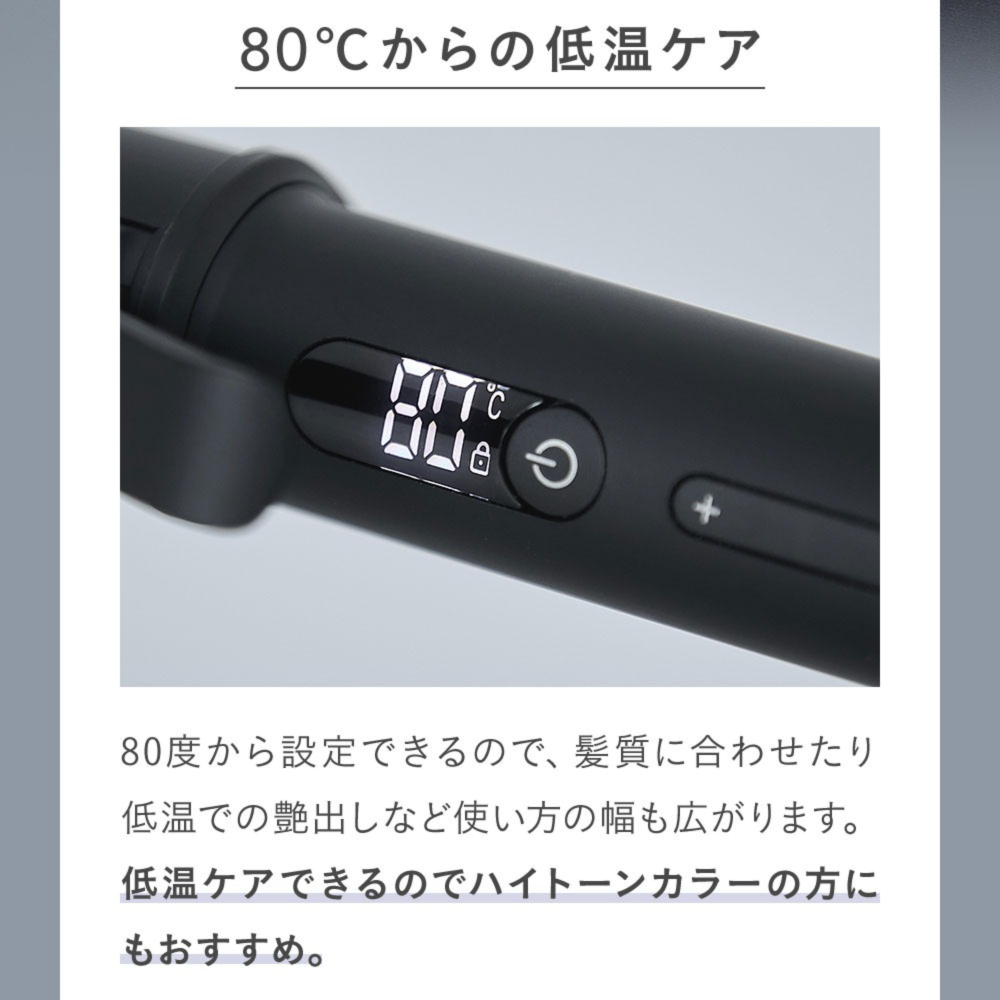 80℃から210℃まで設定できるので、髪質に合わせた使いやすい温度設定が可能に。80℃の低温ケアでツヤを出すなど、使い方の幅も広がります。