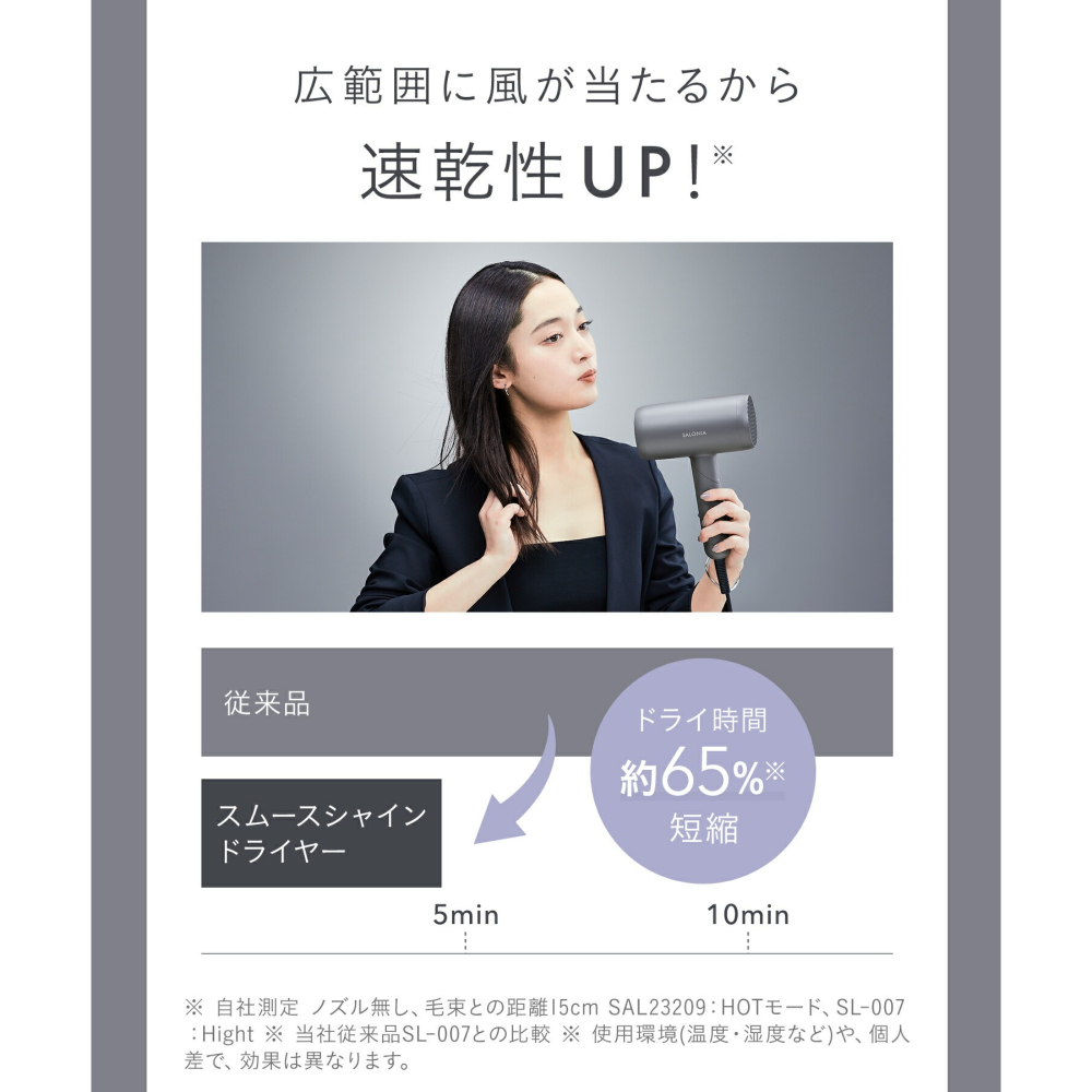 風の当たる面積を広げ、髪の毛全体を約75度※の低温風で一気に乾かすことで、ダメージケアしながら速乾を実現。