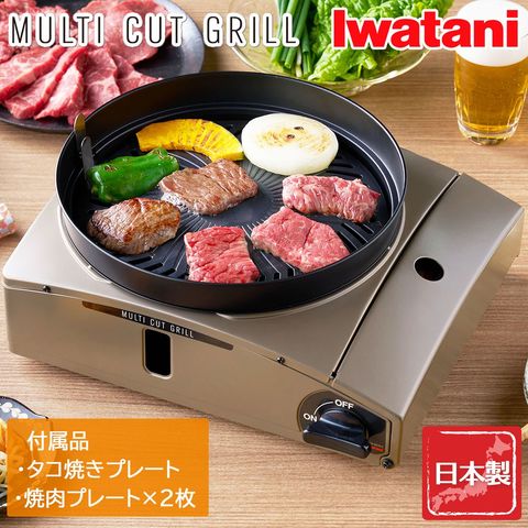 岩谷産業 【在庫限り】マルチカットグリル 煙・油はねを軽減 焼肉プレート2枚 カセットコンロ イワタニ ブラウンゴールド色 CB-MCG-1