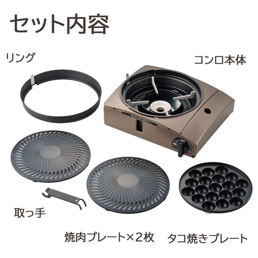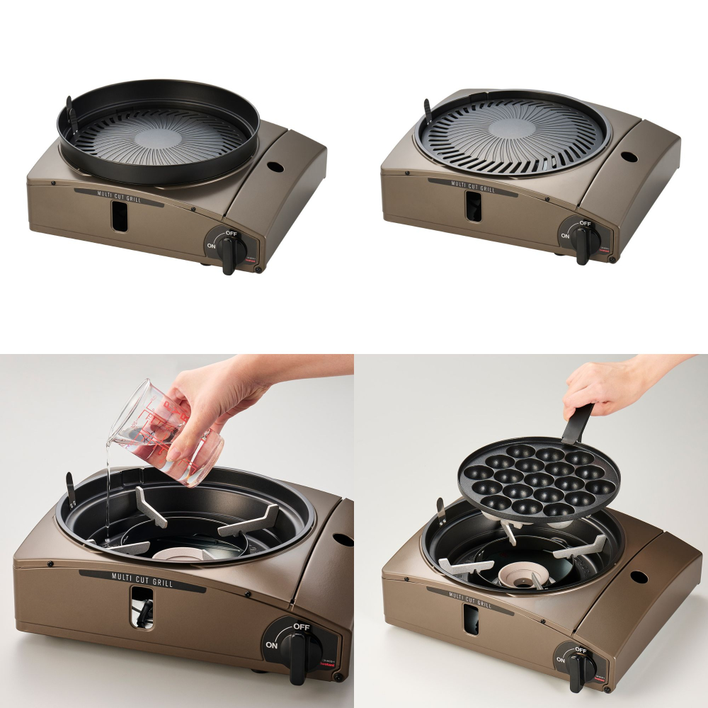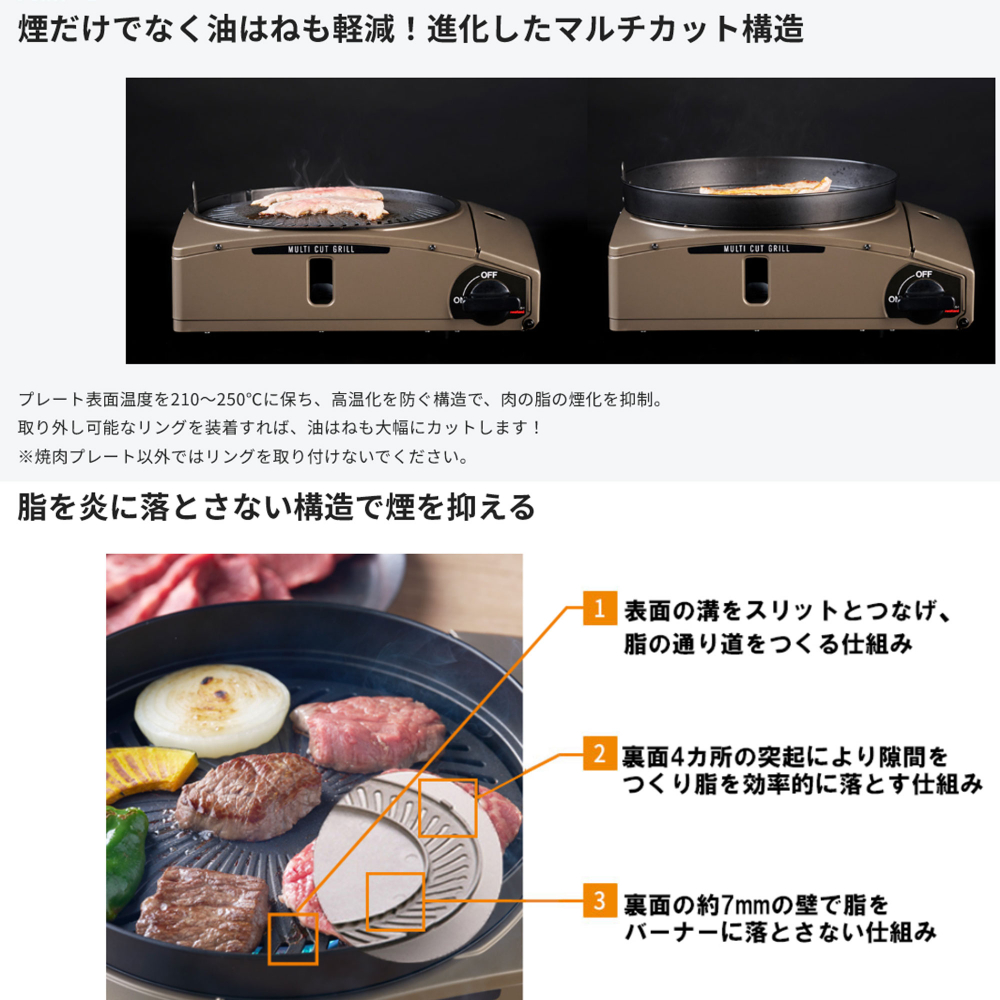 岩谷産業 【在庫限り】 マルチカットグリル 煙・油はねを軽減 焼肉プレート2枚 たこ焼きプレート付 カセットコンロ イワタニ ブラウンゴールド CB-MCG-1