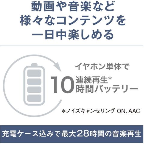 充電ケース含む:約28時間(ノイズキャンセリングON、AAC)