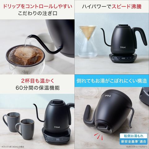ティファール T-fal 電気ケトル 0.8L カフェロックコントロール 温度調節8段階 保温 ハイパワー スピード沸騰 湯漏れ防止 コーヒー ドリップ おしゃれ KO9208JP