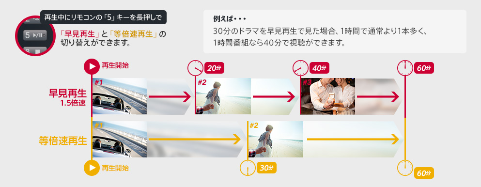 「早見再生」でまとめ録りした番組をイッキ見!< 音声付き1.5倍速再生>