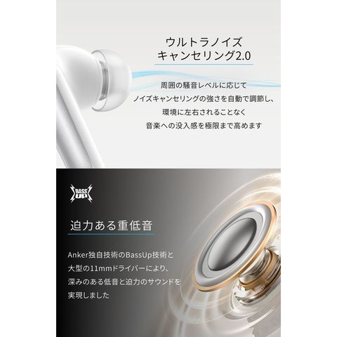 イヤホン本体、充電ケース (一体型USB-Cケーブル)、イヤーチップ (5種)、クイックスタートガイド、安全マニュアル、技適マーク認証済み商品 (周波数帯:2.40~2.48GHz)、18ヶ月保証 + 6ヶ月 (Ankerで会員登録後) 、カスタマーサポート