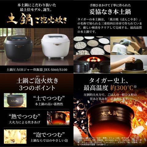 タイガー魔法瓶 土鍋圧力IHジャー炊飯器 炊きたて 土鍋ご泡火炊き 5.5合炊き 日本製 ミストホワイト JRX-S100-WS