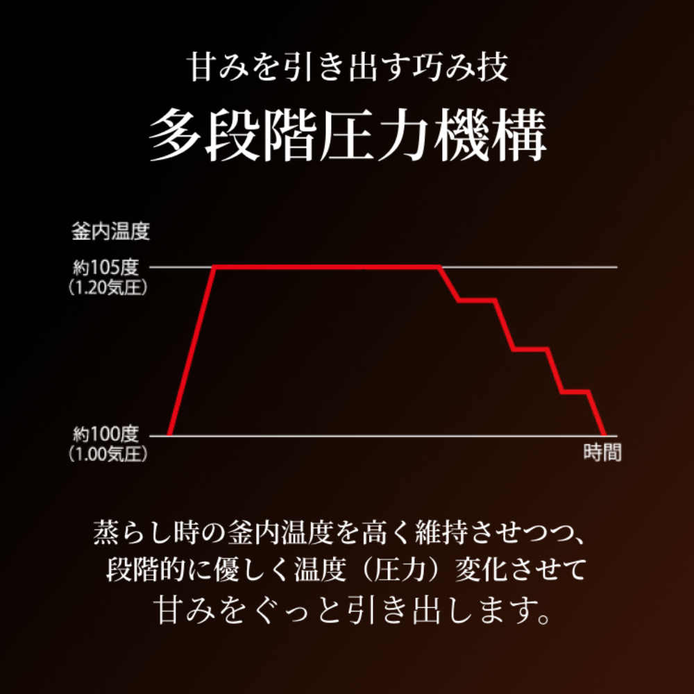 食感3段階炊きわけ、「少量旨火炊き」など、こだわりの炊飯メニューと保温技術。