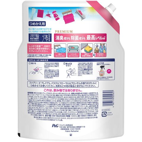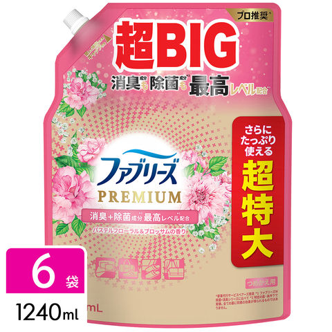 P&G ファブリーズ 消臭スプレー PREMIUM 消臭+除菌成分最高レベル配合 衣類・布製品用消臭剤 パステルフローラル&ブロッサムの香り 詰め替え 超特大 1240mL×6袋 4987176305657