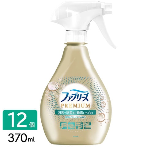 P&G ファブリーズ 消臭スプレー PREMIUM 消臭+除菌成分最高レベル配合 衣類・布製品用消臭剤 清潔なランドリーの香り 本体 370mL 12個 4987176301536