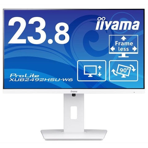 iiyama 液晶ディスプレイ 23.8型/FHD 1920×1080/HDMI ×1 DisplayPort ×1/ホワイト/スピーカー:あり/IPS方式(ノングレア)/昇降/画面縦回転/画面角度調整 XUB2492HSU-W6