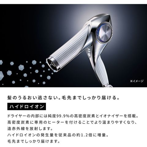 ドライヤーの内部には純度99.9%の高密度炭素とイオナイザーを搭載。