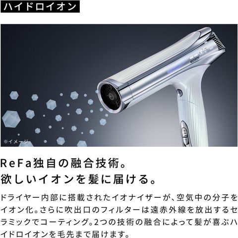 吹出口が広くなったことで、風量が強くても、柔らかく広がり髪が絡まりにくい風に。
