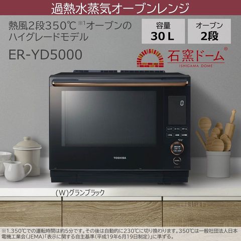 東芝 石窯ドーム 過熱水蒸気 オーブンレンジ 30L 2段調理 グランブラック ER-YD5000-K