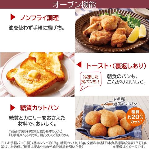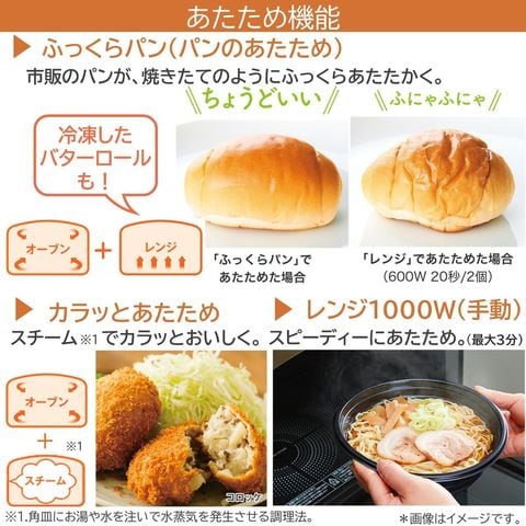 便利なあたため機能 ふっくらパン(パンあたため)/カラッとあたため(揚げ物のあたため)