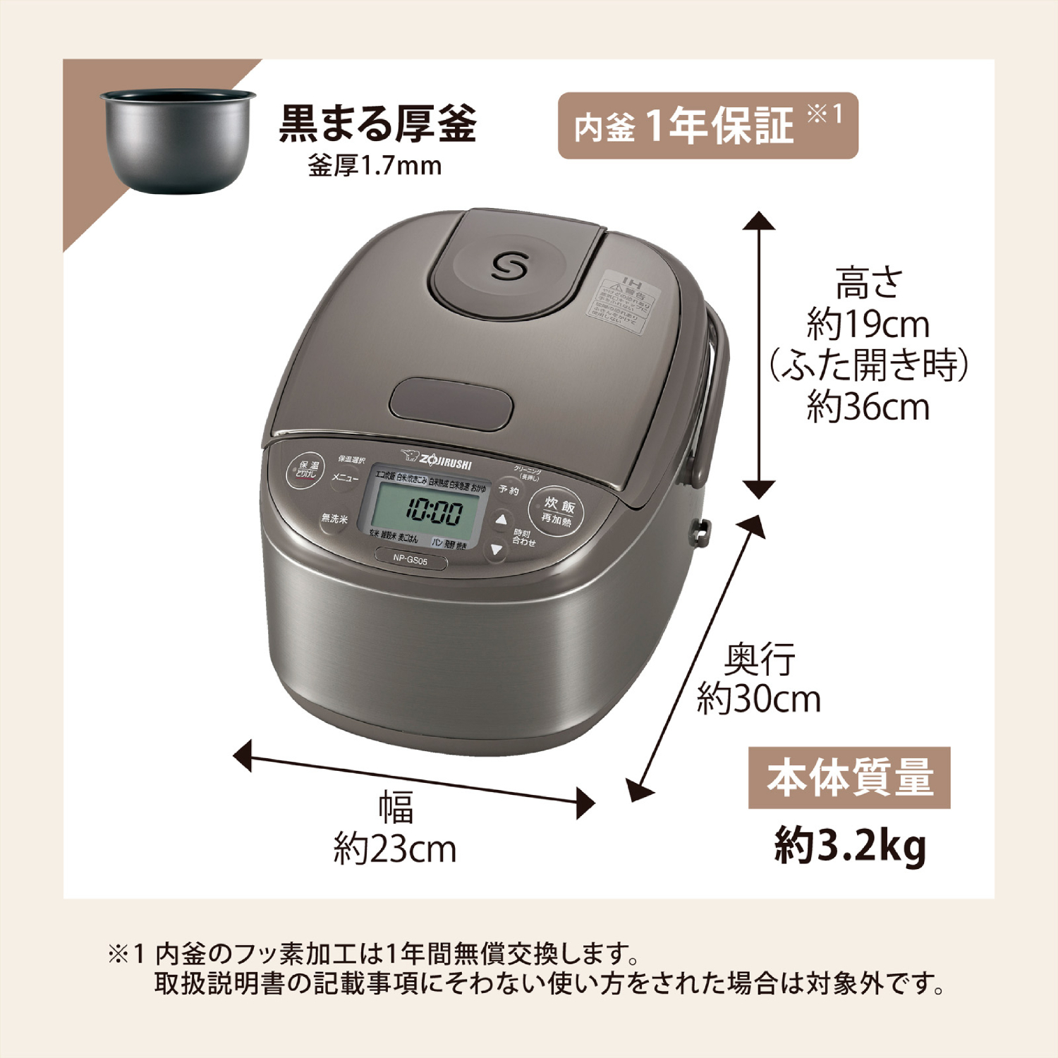 象印マホービン IH炊飯ジャー 極め炊き 3合炊き ステンレスブラウン 炊飯器 NP-GS05-XT