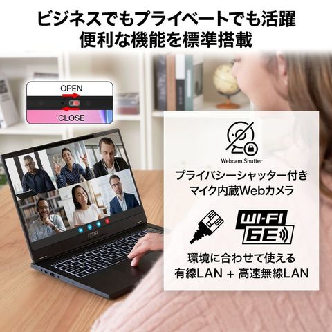 Webカメラ:92万画素(マイク内蔵)プライバシーシャッター付