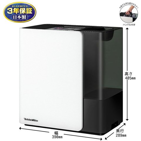 持ち運びの容易さ:本体に「カンタン持ち運びハンドル」、タンクに「タンクWとって」がついており、満水時約7.7 kgになるタンクの持ち運びも容易です。