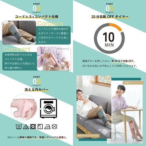 両手でもまれているような「手もみ」感覚を追求した脚専用エアマッサージャー。
