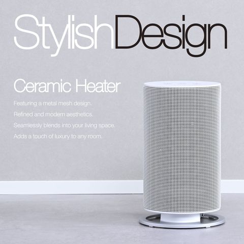 商品説明:コンパクトながら1200Wのハイパワー。強・中・弱の3段階パワー調節可能。5段階室温設定可能なセンサーで、賢く省エネ。寝室にも最適な静音設計。自動首振り機能付き。インテリアになじむメッシュデザイン。リビングからトイレ・脱衣所でも幅広く活躍。
