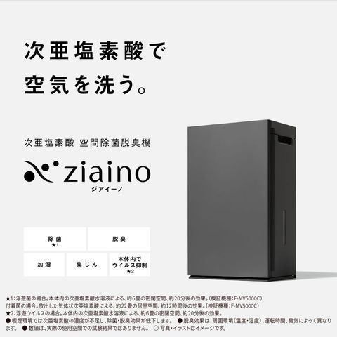★3:浮遊ウイルスの場合、本体内の次亜塩素酸水溶液による、約6畳の密閉空間、約20分後の効果