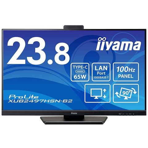 iiyama 液晶ディスプレイ 23.8型/1920×1080/HDMI DisplayPort USB Type-C映像出力:給電/ブラック/スピーカー:あり/IPS方式/昇降/回転/LANポートあり XUB2497HSN-B2