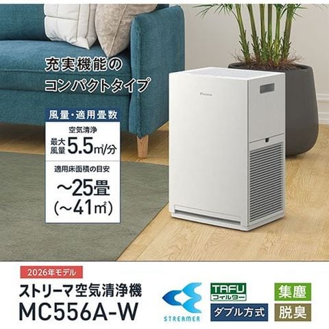 ダイキン 空気清浄機(加湿無し) 25畳まで ホワイト ストリーマ コンパクト 花粉対策 静音 強力吸引 壁際設置 ハウスダスト PM2.5 脱臭 MC556A-W
