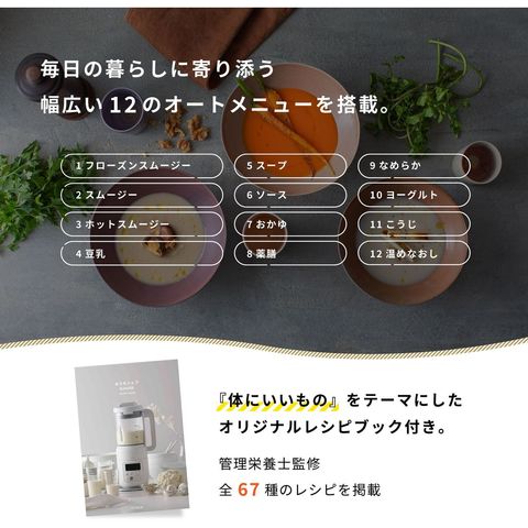 なめらかに仕上げるスープやスムージー、ポタージュ、豆乳や腸内環境が整うヨーグルトなどの