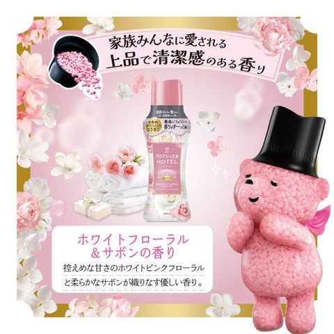 ホワイトフローラル&サボンの香り:控えめな甘さのホワイトピンクフローラルと柔らかなサボンが織りなす優しい香り。