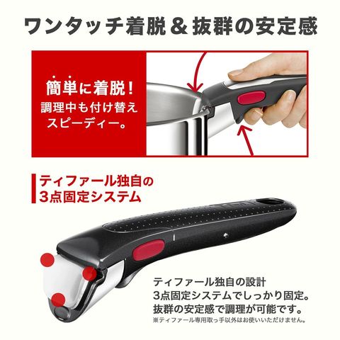 取っ手などの付属品も含めティファール純正品以外を使用した場合には、破損や事故などを生じる恐れがあることに加え、弊社は責任を負いかねますのでご了承ください。