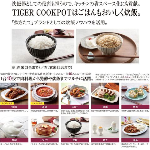 タイガー魔法瓶 電気圧力鍋 COOKPOT(クックポット) 1台10役 お手入れ3点 食洗機対応 コンパクト マットホワイト COK-A220WM