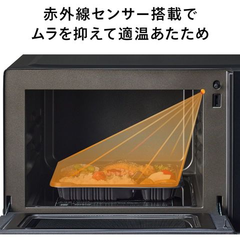 レンジあたためは他のセンサーに比べて温度検知の精度が高い「赤外線センサー」を搭載しているため、自動でムラを抑えて適温にあたためられます。