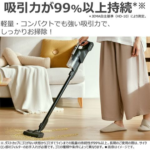 ※1JEMA自主基準(HD-10)により測定。満充電時、バッテリー初期状態、室温20℃の場合。床面の材質、お掃除する場所のゴミの状態・使用環境により異なります。