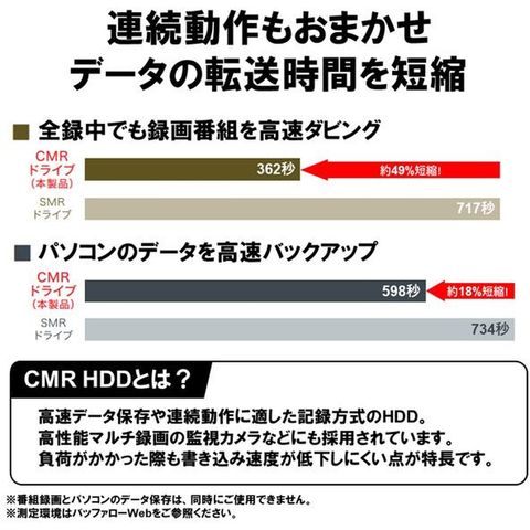 ■CMR HDDを採用、高速ダビング&安定動作(一般に普及しているSMR HDDと比べて約60%の高速でデータ転送