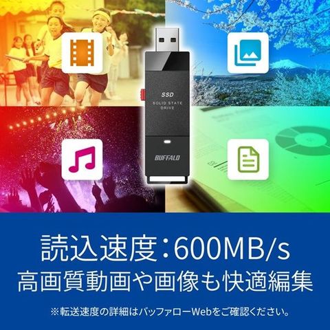 BUFFALO 外付けSSD ポータブル USB3.2 Gen2対応 スティック型 TV録画対応 Type-Cコネクタ付 1.0TB ブラック SSD-SCT1.0U3BA/D